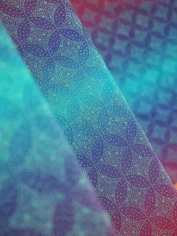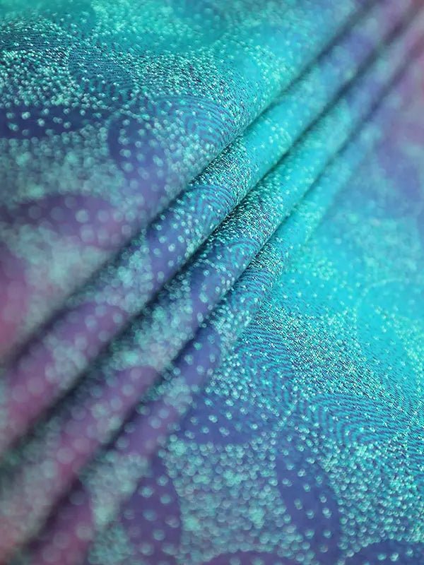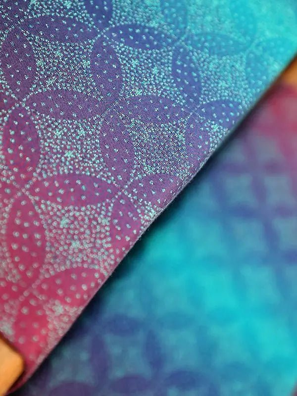Woven with organic cotton and bamboo viscose, this stunning fabric features Oscha's elegant starry night sky design on a striking rich jewel toned mirrored grad, from magenta purple to deep teal and mulberry. Starry Night Brew features two weft yarns which give a lovely pinstriped effect along the length of the fabric.