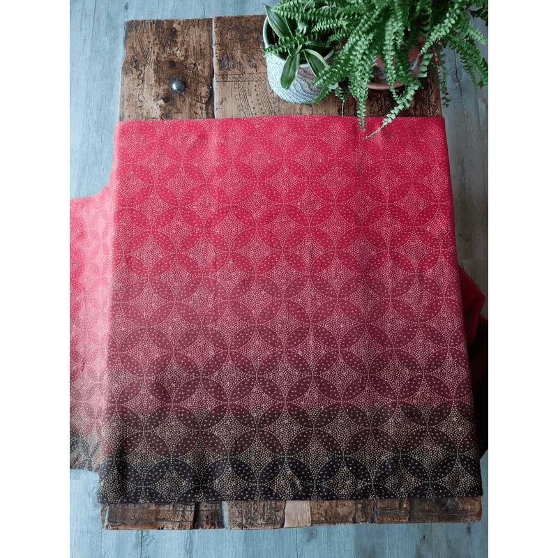 The golden stars sparkle on the sumptuous background, which transitions from vibrant bright reds to deep, rich burgundy, and finally fading to a hint of black coffee. This celebration of vibrant colours embodies the joy and energy of the holiday season and its warmth and cosiness will brighten any winter’s day.