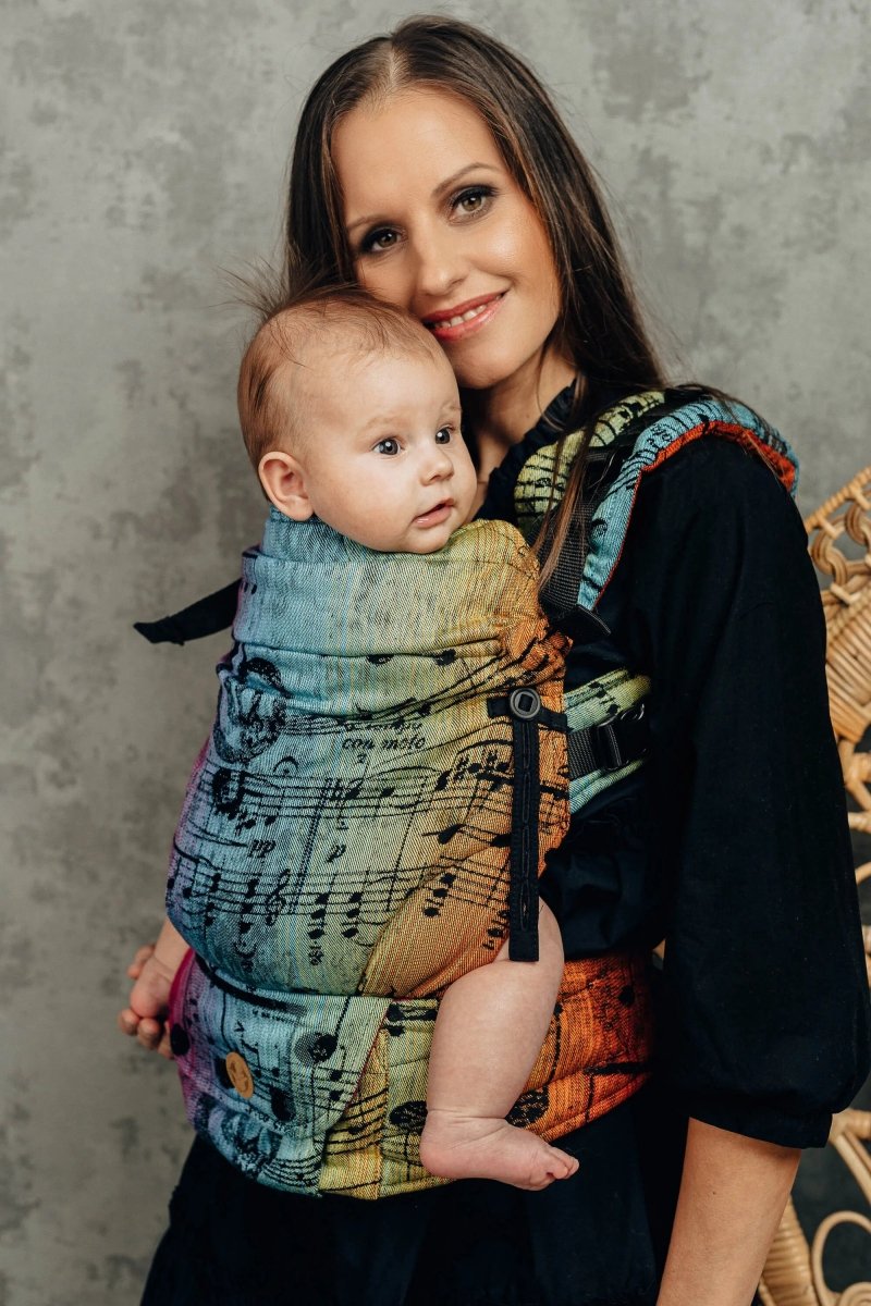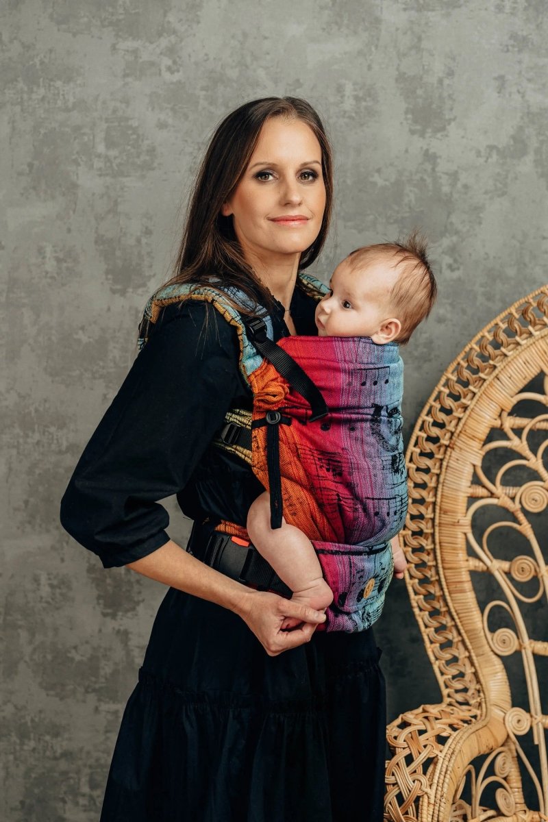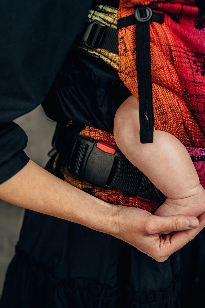 ATTENTION: Actual colors and pattern placement may vary from pictures. The color of the buttons can vary from the one presented in the pictures. Depending on the LOT of the product, the straps regulating the size of the carrier's panel can be solid black or in the colorway of the carrier.