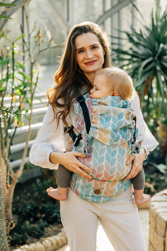 ATTENTION: Actual colors and pattern placement may vary from pictures. The color of the buttons can vary from the one presented in the pictures. Depending on the LOT of the product, the straps regulating the size of the carrier's panel can be solid black or in the colorway of the carrier.