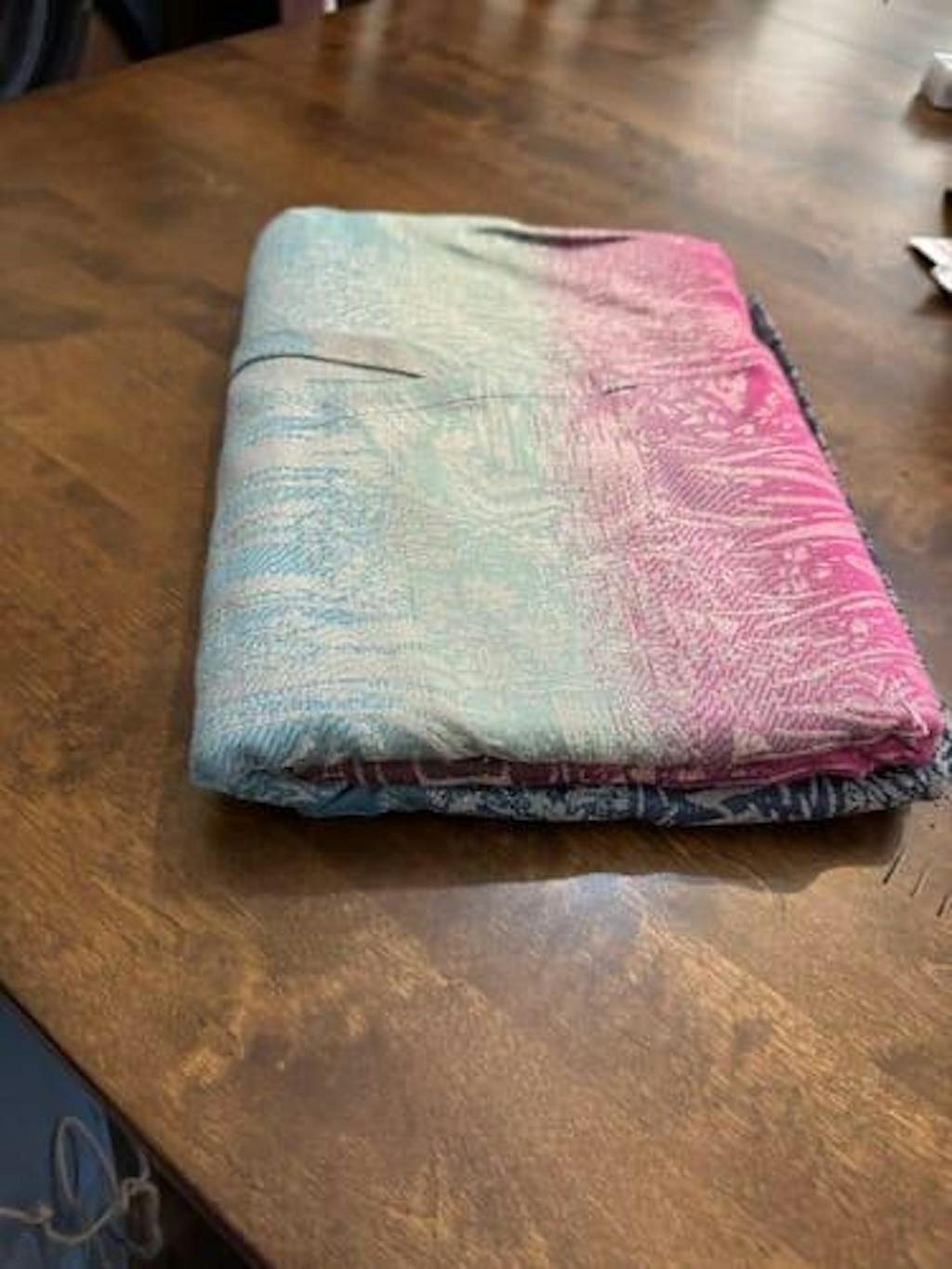 Treebeard Nobody is on My Side features a new yarn of hemp blended with Bamboo viscose creating a wrap that is soft but supportive. It feels thin in hand, soft and mouldable, with more glide than grip.