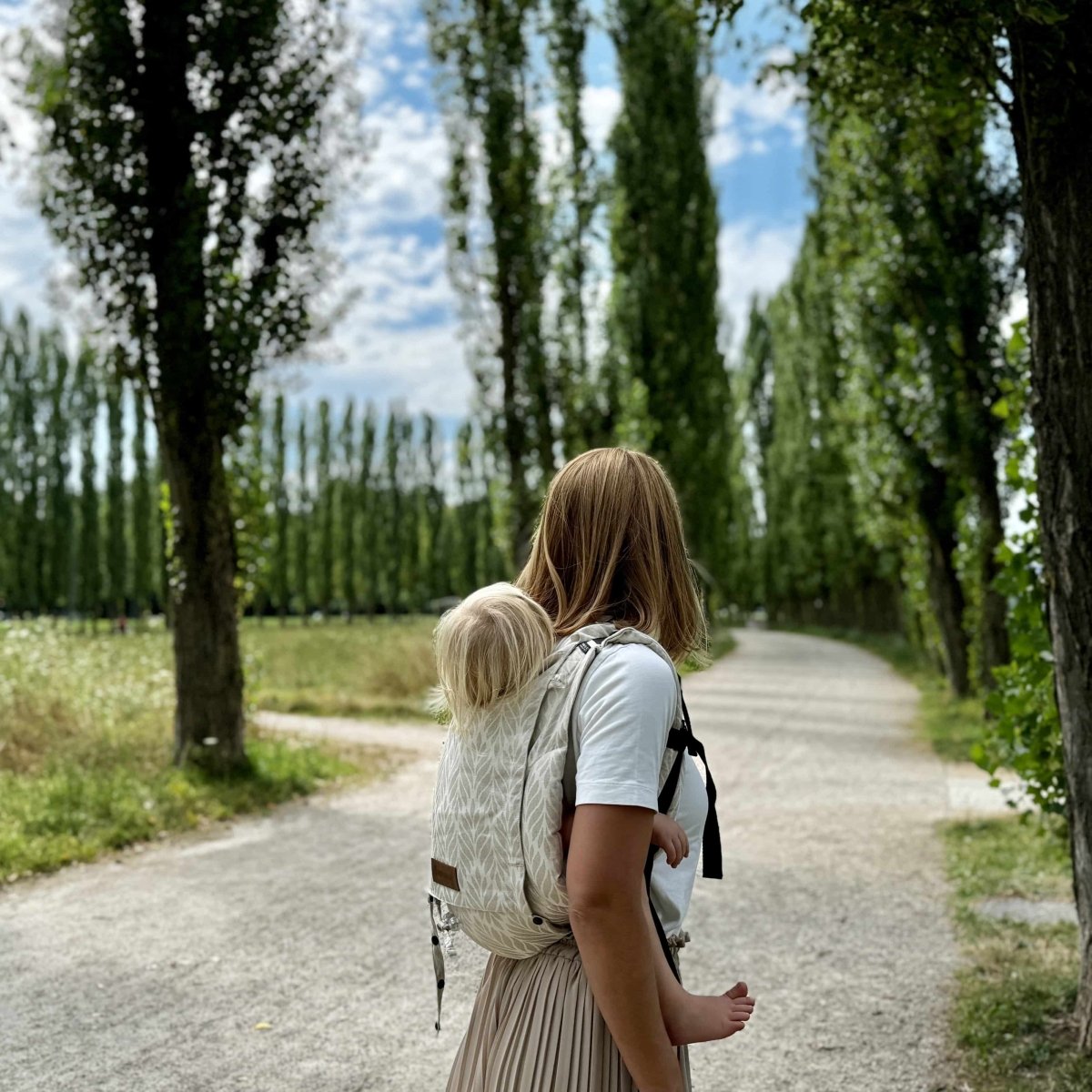 Made from the same premium fabric as Didymos woven wraps, the Trias Creme version features a lightweight 250 GSM blend of 55% organic cotton and 45% linen. The fabric’s natural color palette of cream and white offers a timeless, neutral look while providing breathability and gentle support.