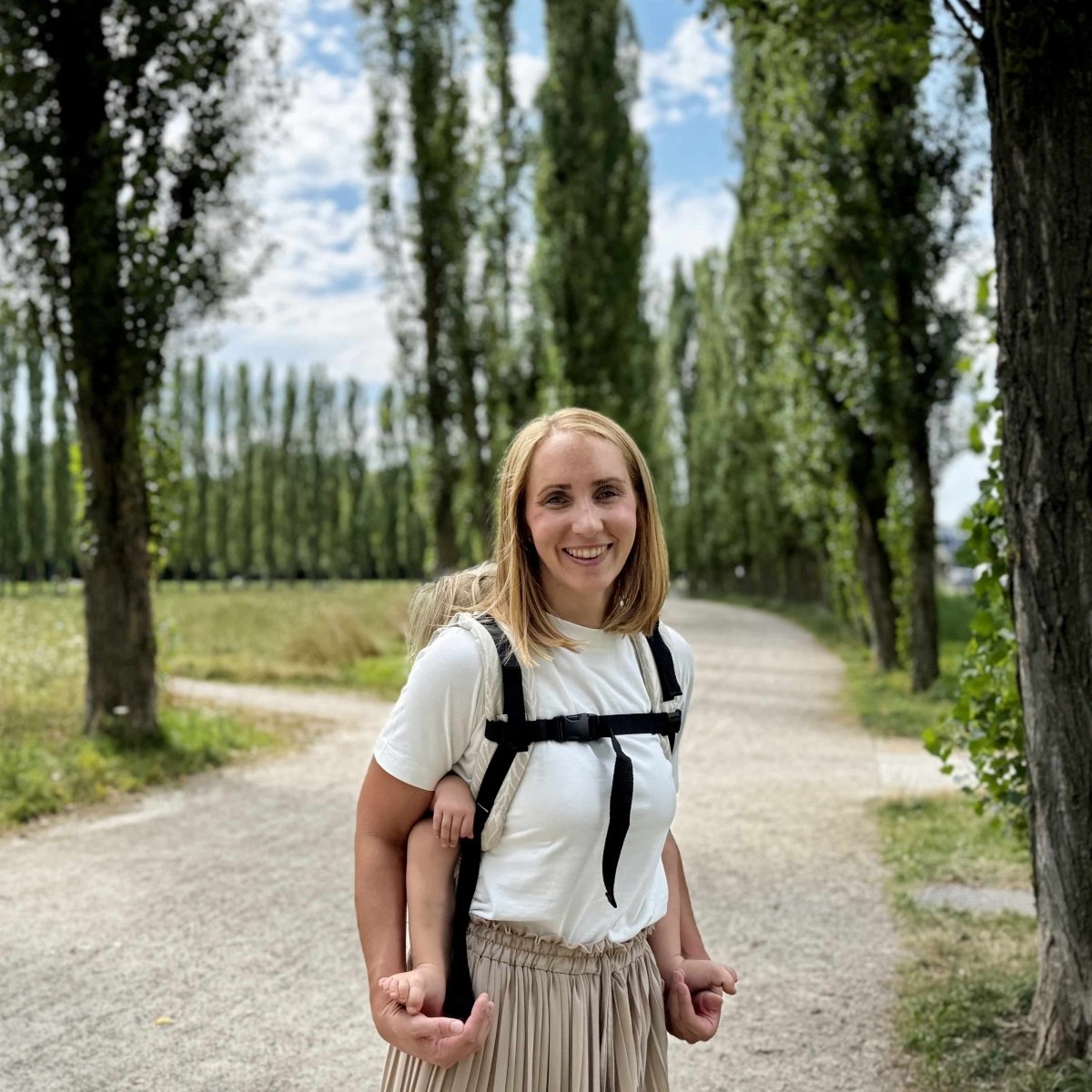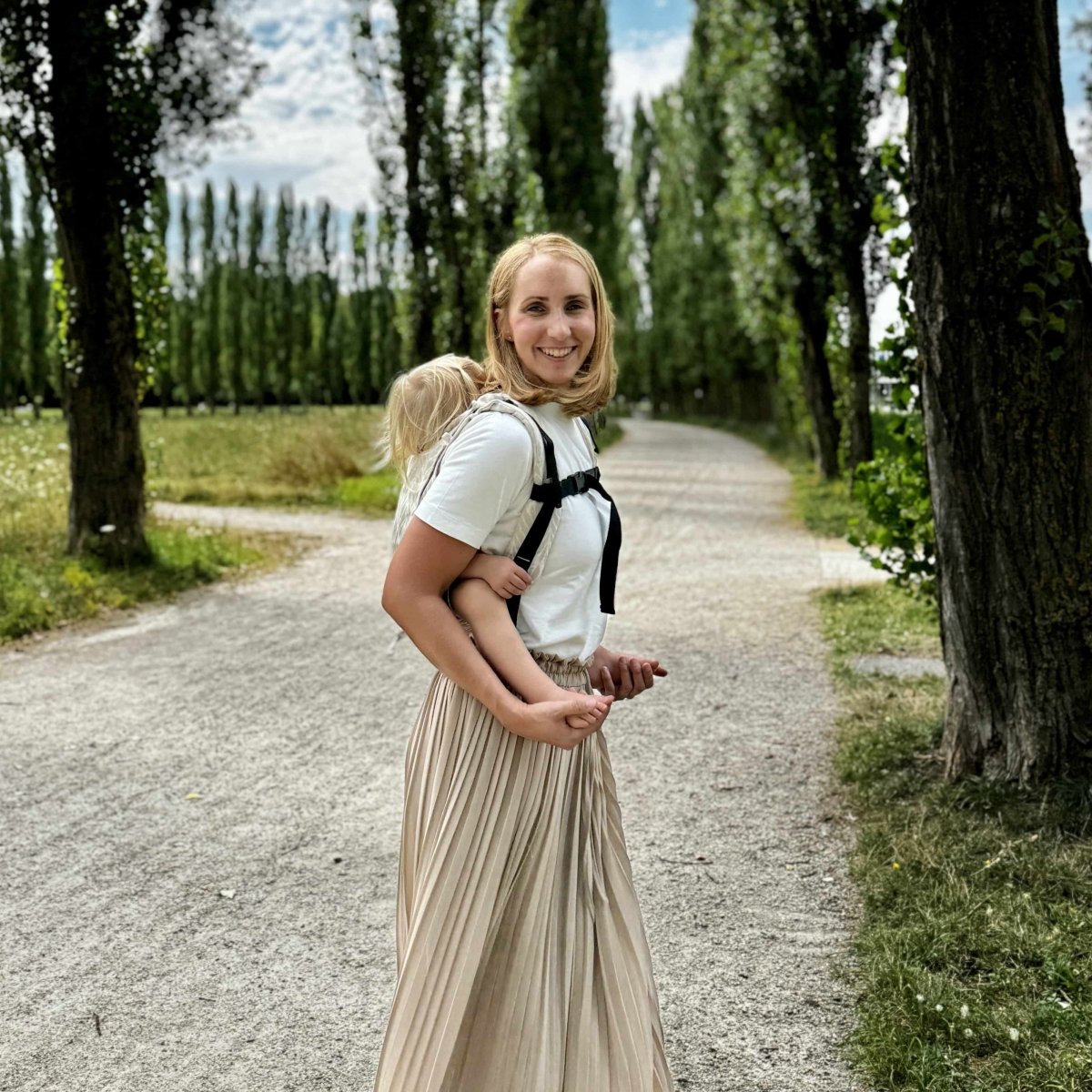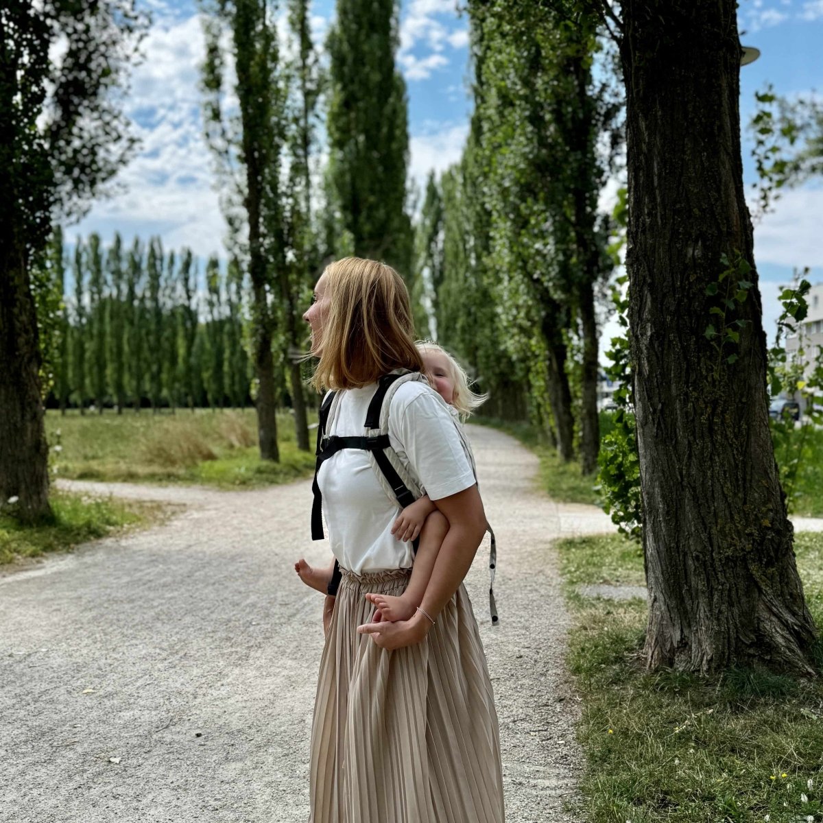 Back panel made from DIDYMOS wrap fabric with diagonal stretch for a supportive, form-fitting pouch