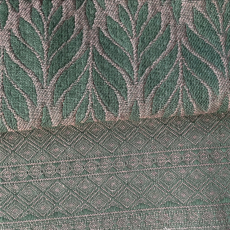 The Forest Floor Trias Ring Sling in 100% organic cotton. Featuring a striking Fir Green and brown combination, this ring sling offers both elegance and functionality for caregivers and their little ones.