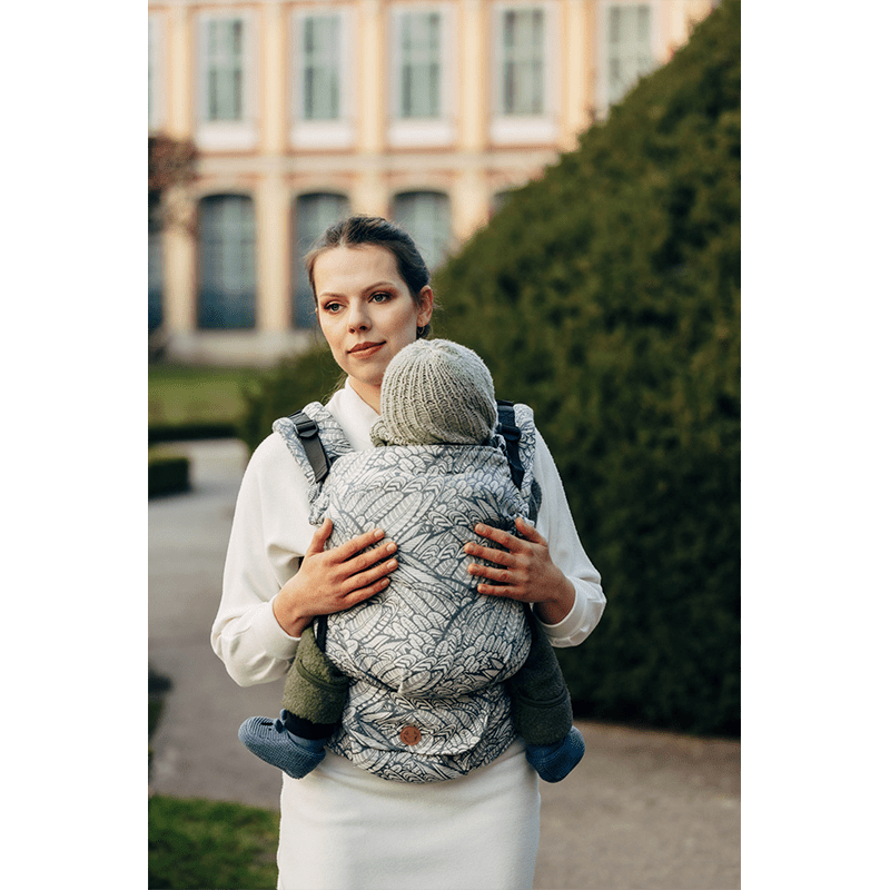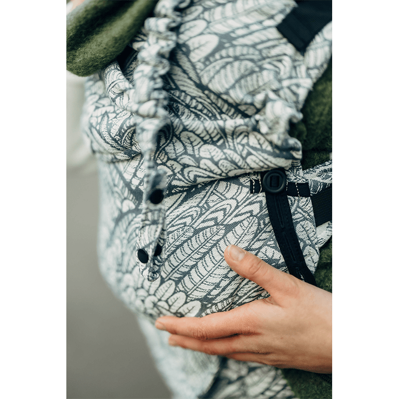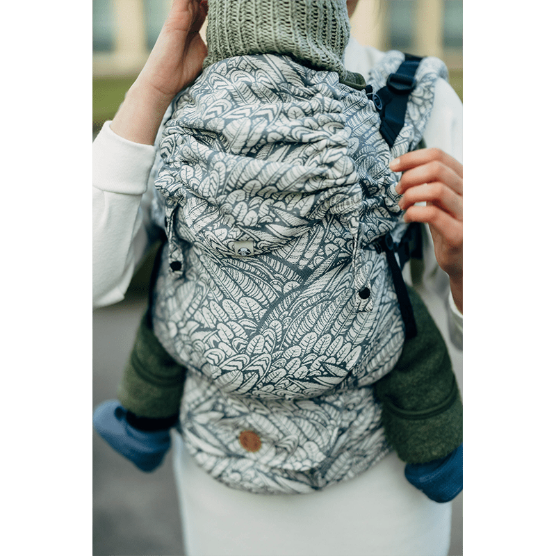 ATTENTION: Actual colors and pattern placement may vary from pictures. The color of the buttons can vary from the one presented in the pictures. Depending on the LOT of the product, the straps regulating the size of the carrier's panel can be solid black or in the colorway of the carrier.