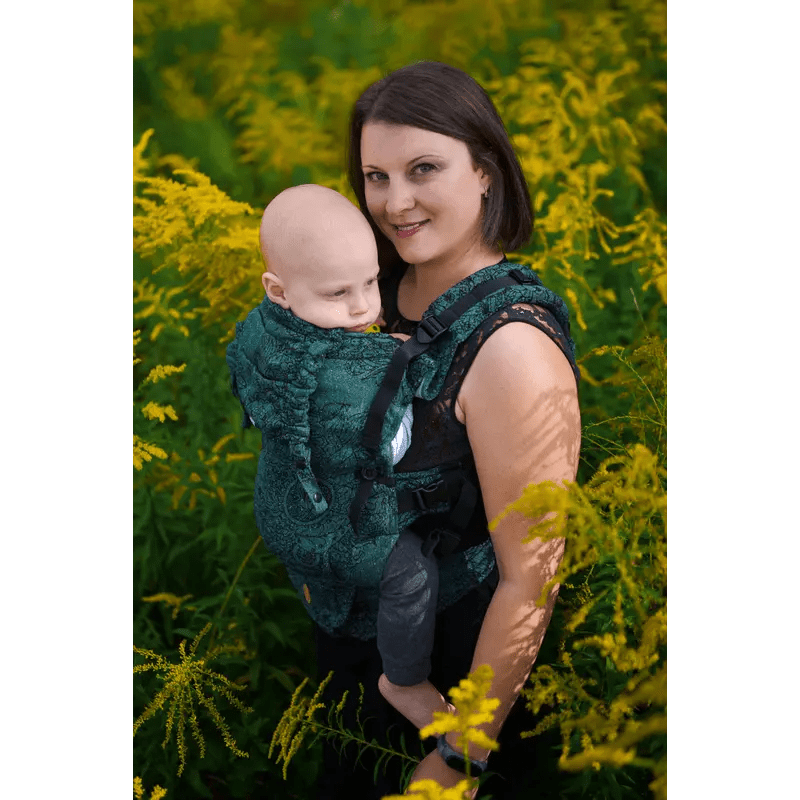 ATTENTION: Actual colors and pattern placement may vary from pictures. The color of the buttons can vary from the one presented in the pictures. Depending on the LOT of the product, the straps regulating the size of the carrier's panel can be solid black or in the colorway of the carrier.