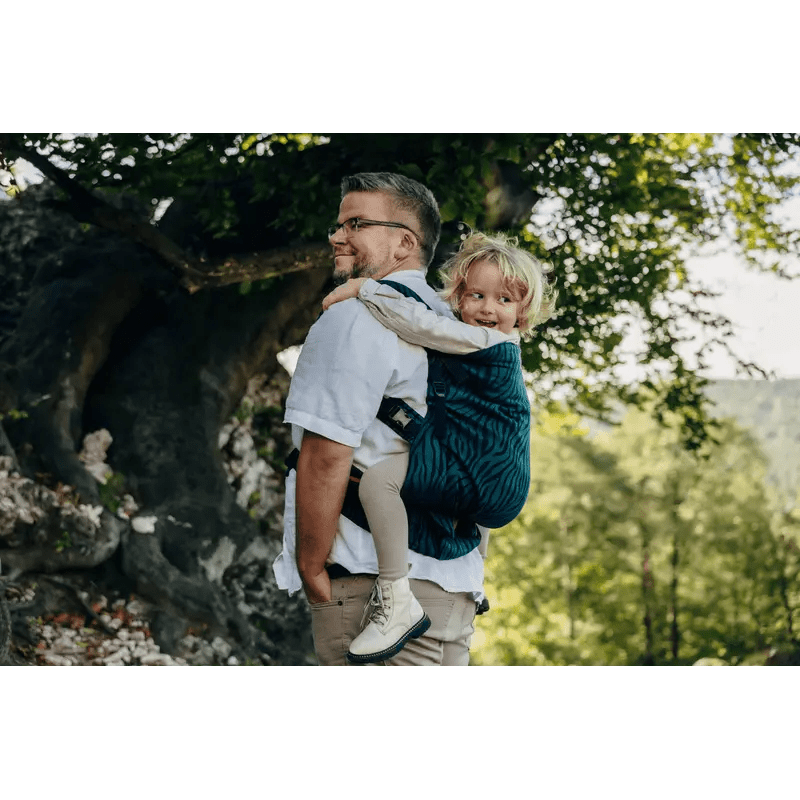 Zebra Savanna Lenny Preschool Carrier by Lennylamb. For your toddlers and preschoolers, an adjustable and comfortable full buckle carrier.